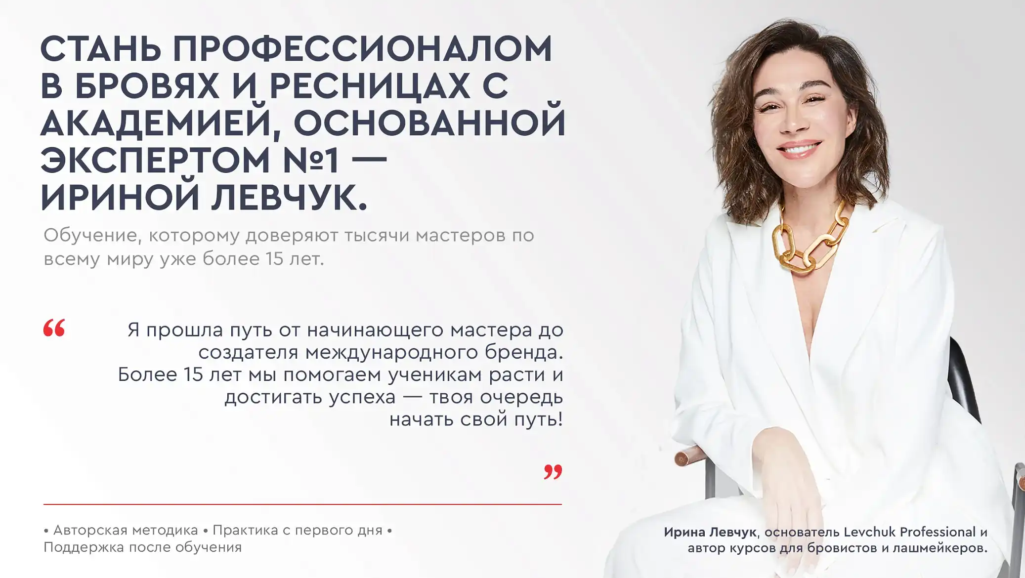 Основатель Levchuk Professional и автор курсов для бровистов и лашмейкеров.